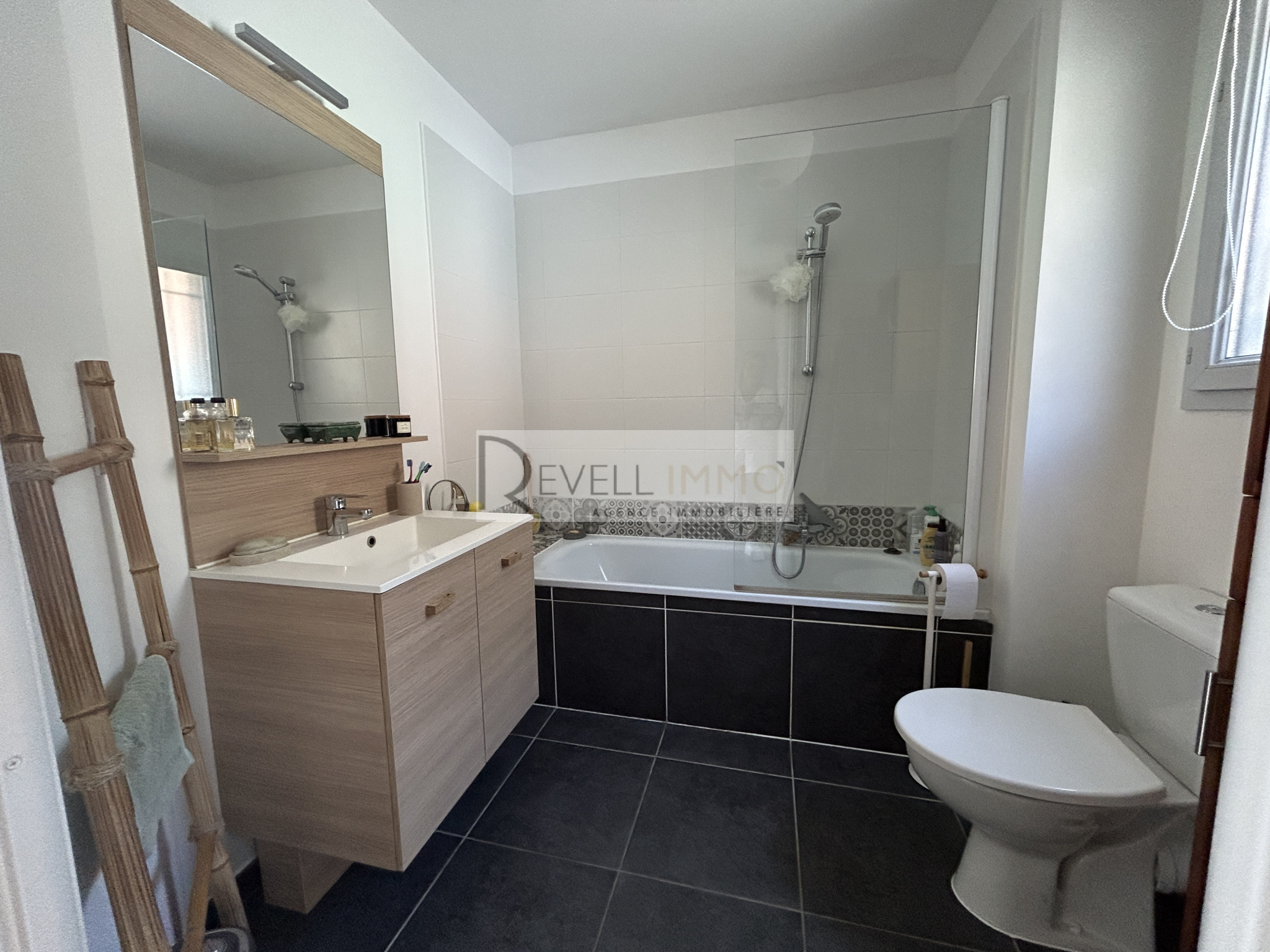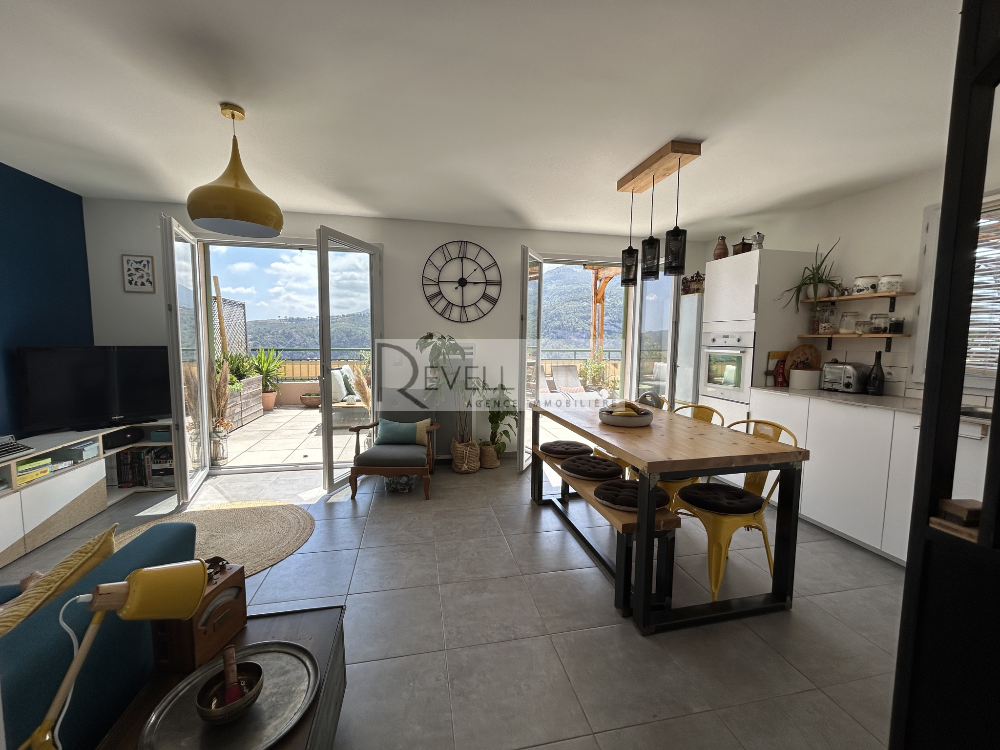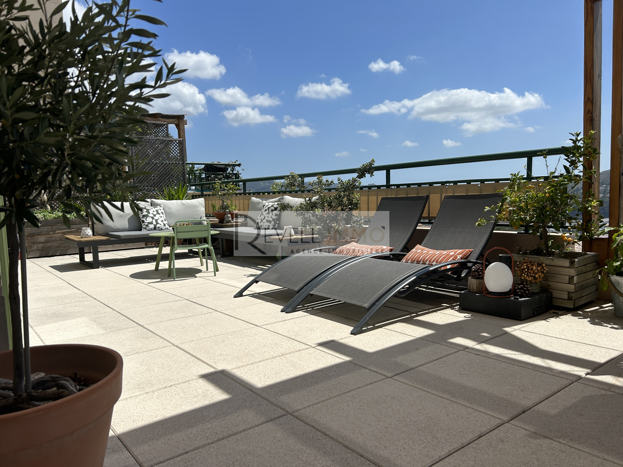 Clara Osina 0603897548 Superbe appartement en duplex construction de 2018 de 59 M² environs avec terrasse de 54m²,un garage,un parking privatif il est composé au premier étage ,d'une entrée,une salle de bains avec wc,deux chambres avec une très belle vue Au rez de chaussée , une buanderie avec un wc,une cuisine aménagée ouverte sur un salon lumieux, donnant un acces direct à une tres grande terrasse Ce bien se trouve dans une residence agreable avec de faible charges 100€ par mois DPE en cours