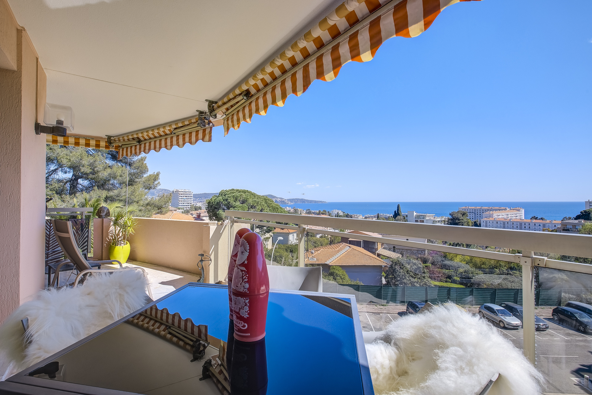 CO-EXCLUSIVITÉ - Bas Fabron - Dans une résidence de standing à taille humaine avec gardien et piscine, très bel appartement de 3 pièces de 90 m² traversant en étage élevé, avec une belle terrasse offrant une vue panoramique sur la mer. Entrée avec placards, grand séjour ouvrant sur la terrasse, cuisine équipée et aménagée avec balcon, deux chambres, un dressing, salle d'eau, salle de bains. Climatisé, en parfait état, belles prestations. Vendu avec cave et possibilité de garage en supplément.